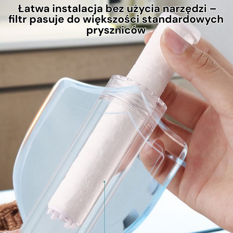● Łatwa instalacja bez użycia narzędzi – filtr pasuje do większości standardowych pryszniców, umożliwiając szybką wymianę i natychmiastową poprawę jakości wody.