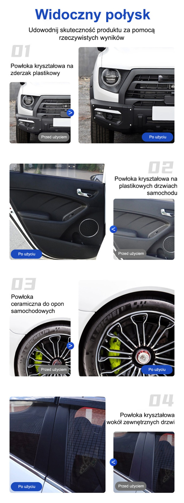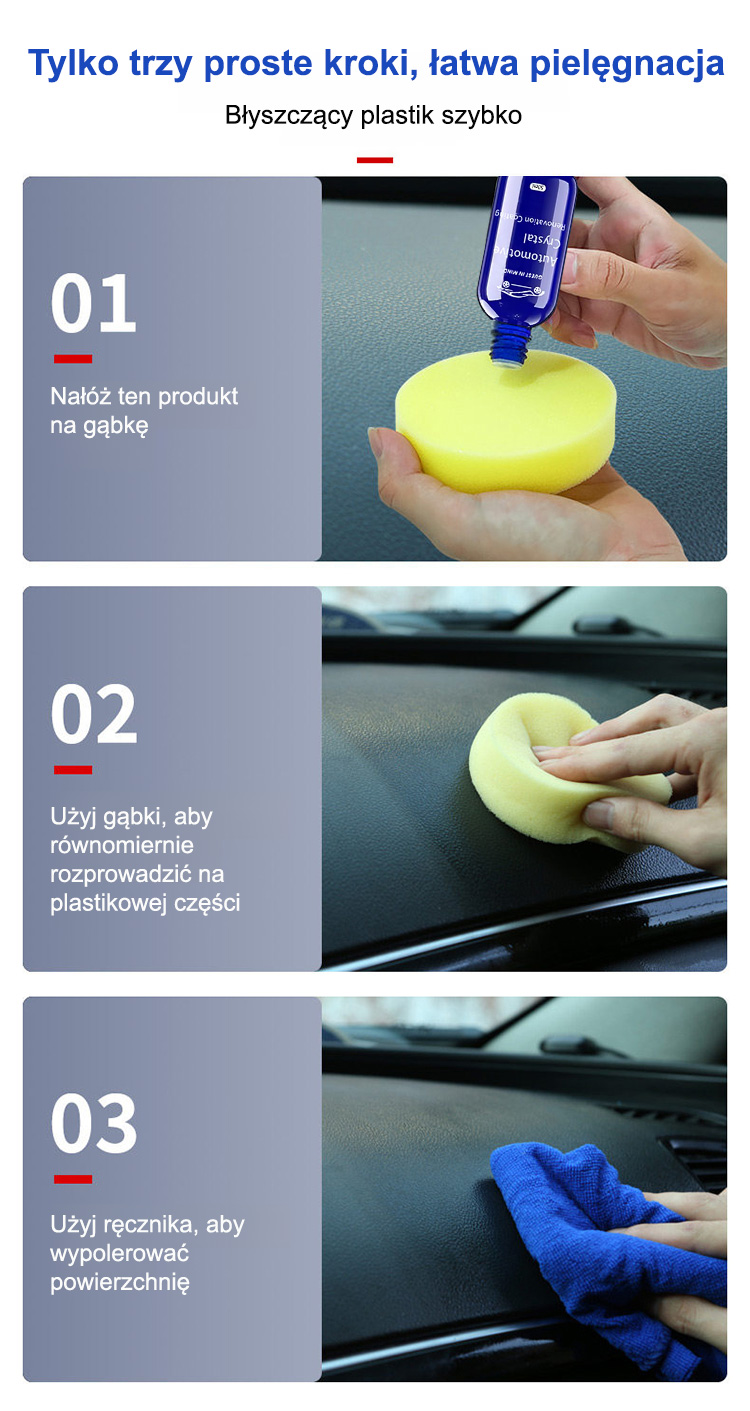 🌟Jedna butelka wystarczy na 5 lat! Pokryjesz nią kilka samochodów. Świetnie działa też na czarne i kolorowe elementy plastikowe – odświeża i nadaje im elegancki wygląd.
